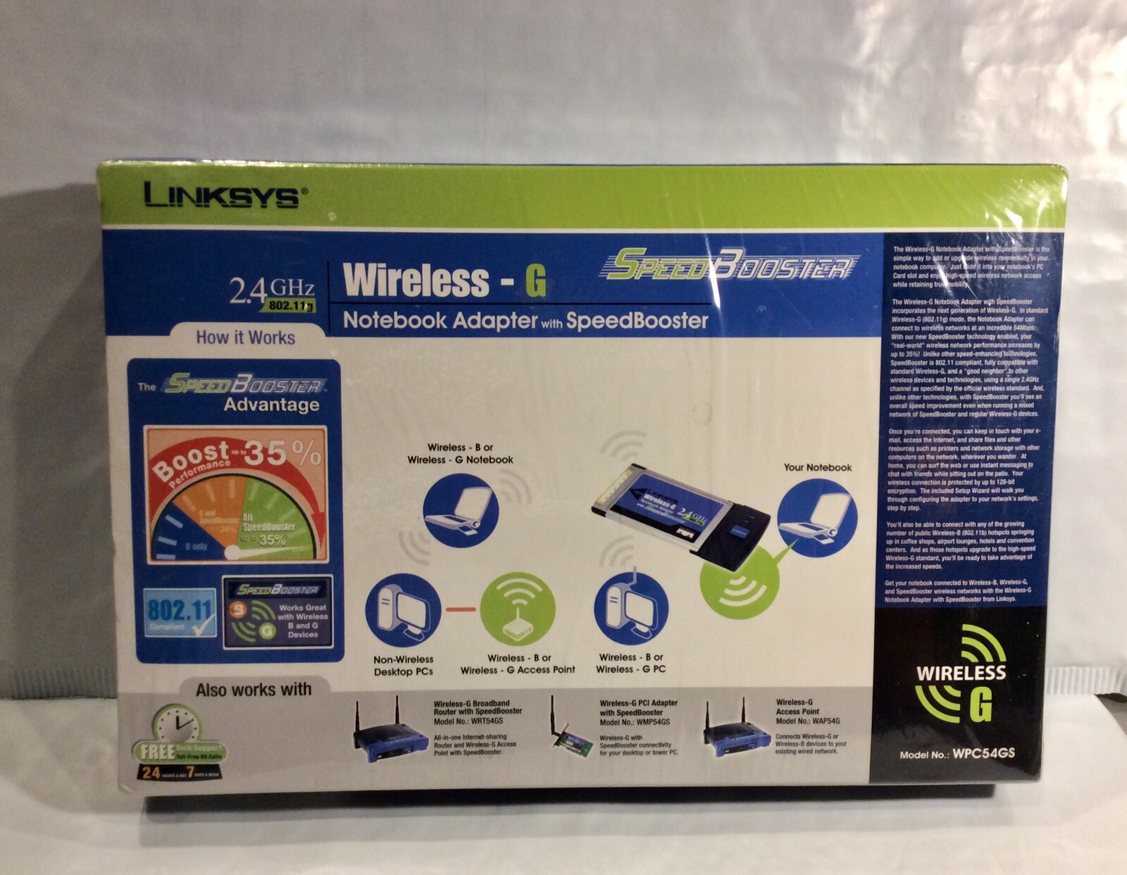 Linksys Wireless - G Notebook Adapter w/ SpeedBooster NFS WPC54GS NEW Sealed