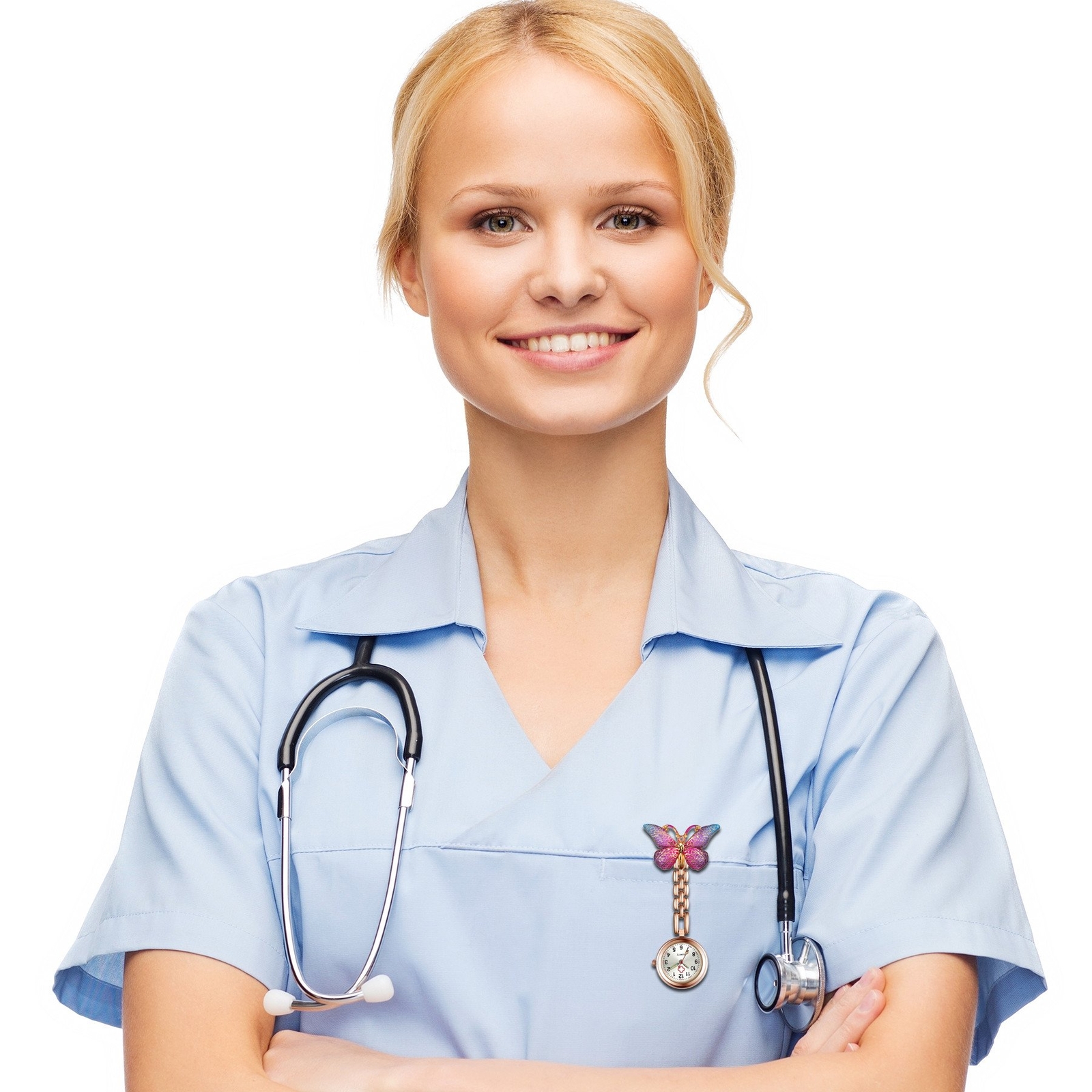Nurse Clip-on Butterfly Fob Brooch Quartz Pocket Work Watch For Nurse's Day Gift