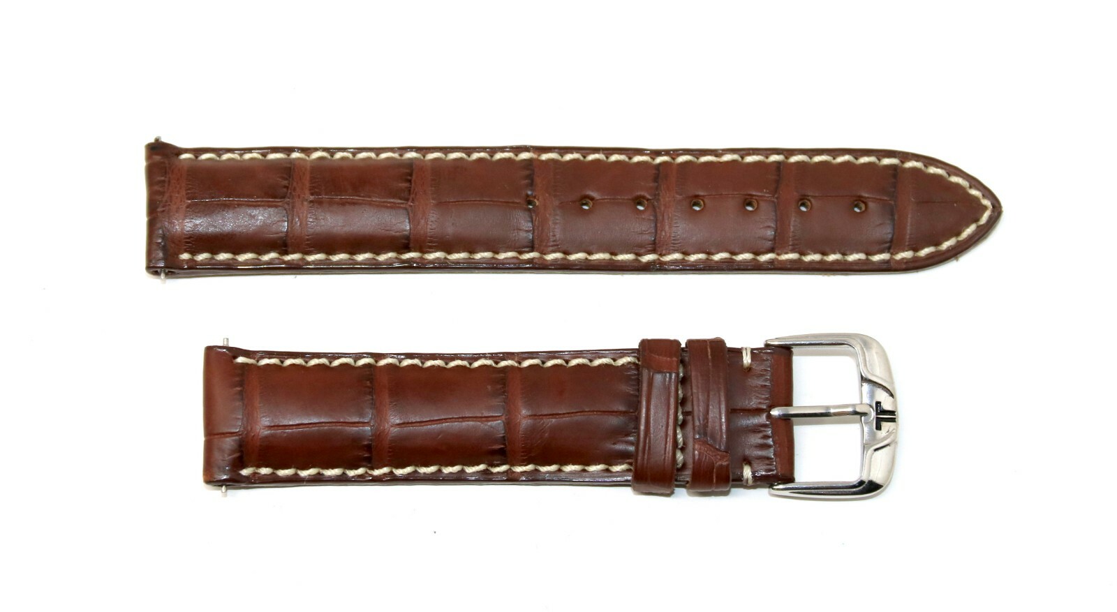 Jacques Lemans 18MM Genuine Alligator Leather Watch Strap BROWN Silver Buckle