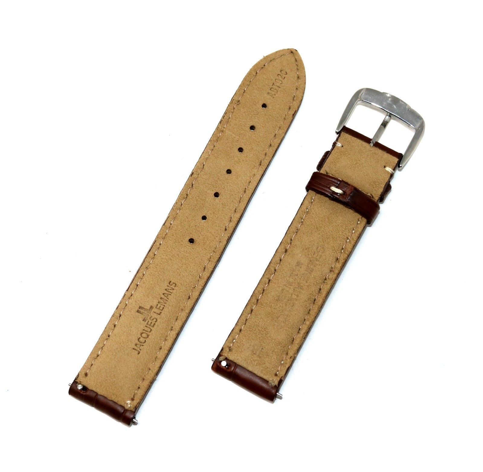 как выглядит Jacques Lemans 18MM Genuine Alligator Leather Watch Strap BROWN Silver Buckle фото