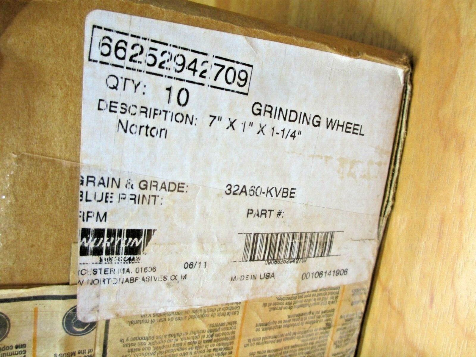 Norton 32A60-KVBE NEW Grinding Wheel 7 x 1 x 1-1/4 66252942709