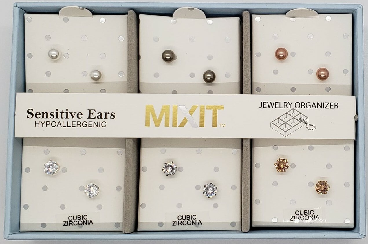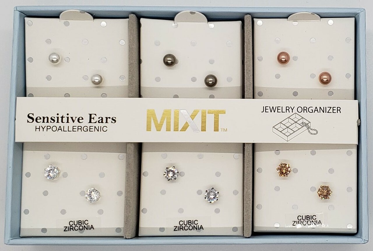 6 PAIR Boxed EARRING SET Hypoallergenic /Sensitive Ears