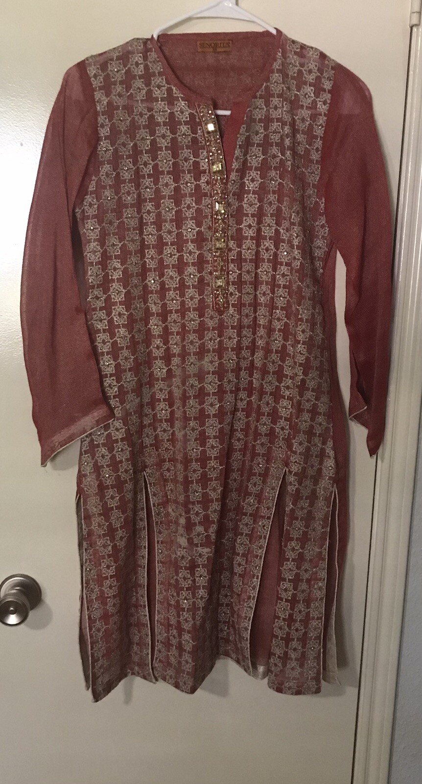 Pakistani/Indian Red OrganzyGeorgette shalwar kameez size girls Small