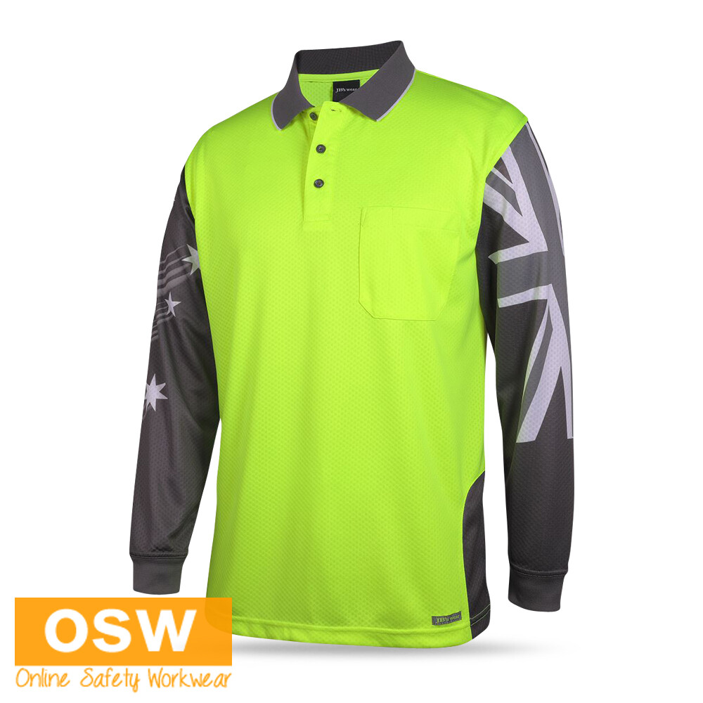 Hi Vis Men LONG Sleeve Orange/Charcoal Yellow/Charcoal SOUTHERN Cross Polo Shirt