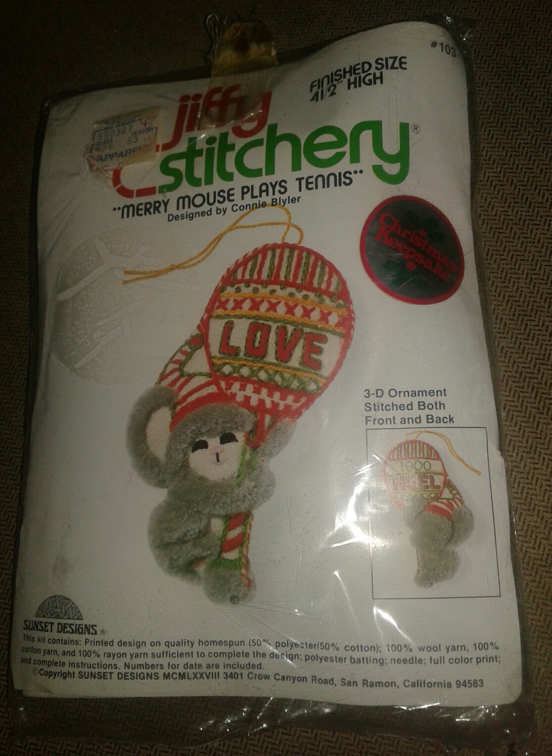 как выглядит Vintage Jiffy Stitchery Merry Mouse Plays Tennis Vintage Sunset Designs New фото