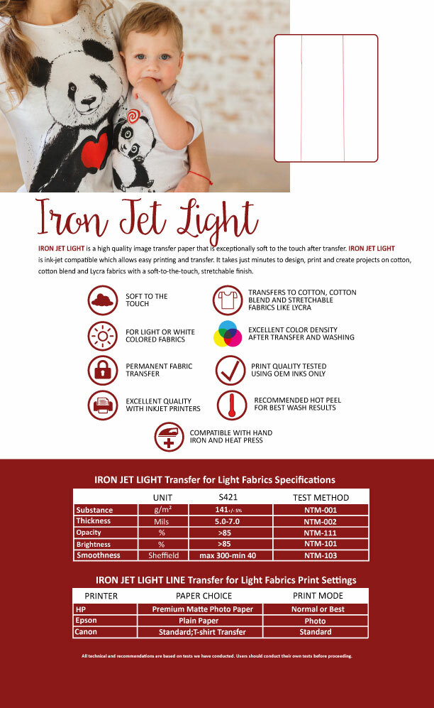 Heat Transfer Paper for Light i shirt 100 Sheets 8.5x11 Double Red Line