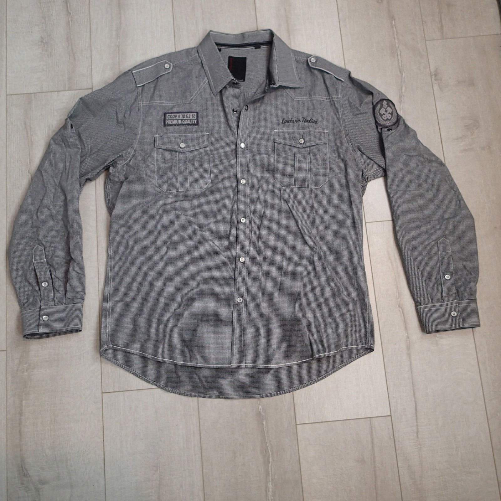 как выглядит 7 DIAMONDS Button snap down Front Shirt Mens xxl roll up sleeve h7 фото