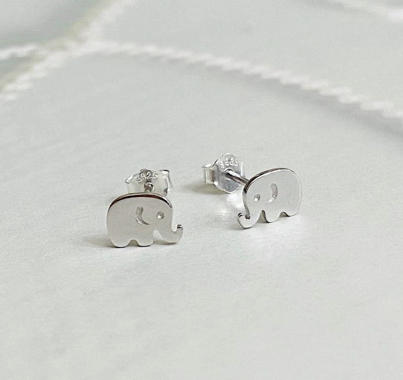 S925 Sterling Silver Tiny Cute Elephant Stud Earrings