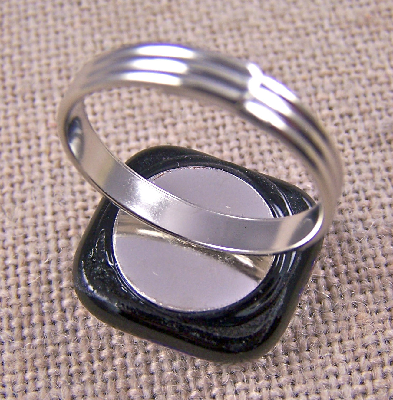 как выглядит DICHROIC Glass Cocktail Ring Adjustable Silver 3/4" 20mm Copper Blue Spiral Coil фото