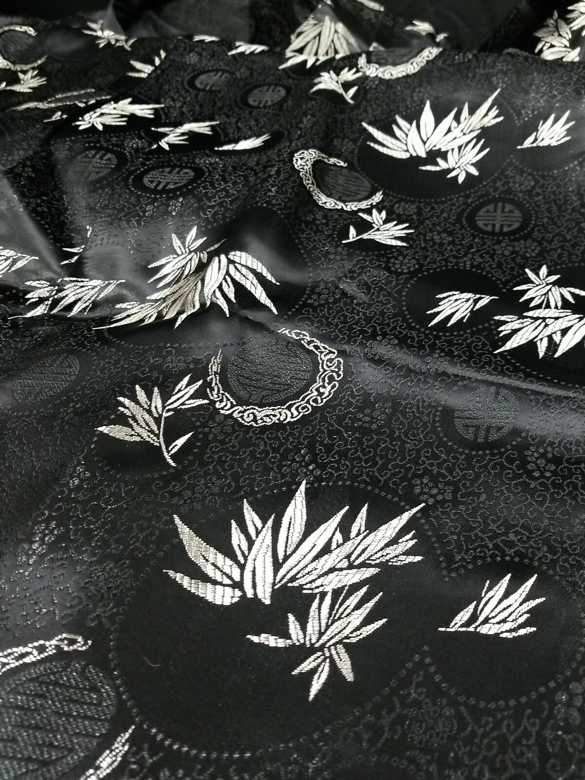 как выглядит Vintage Traditional Asian Chinese kimono Robe Black and Silver Floral Design фото