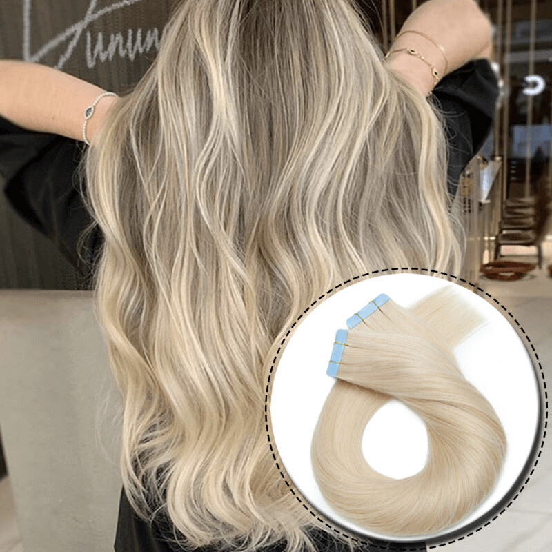 как выглядит Tape in 100 Human Hair Extensions Seamless Skin Weft THICK Volume Blonde US фото