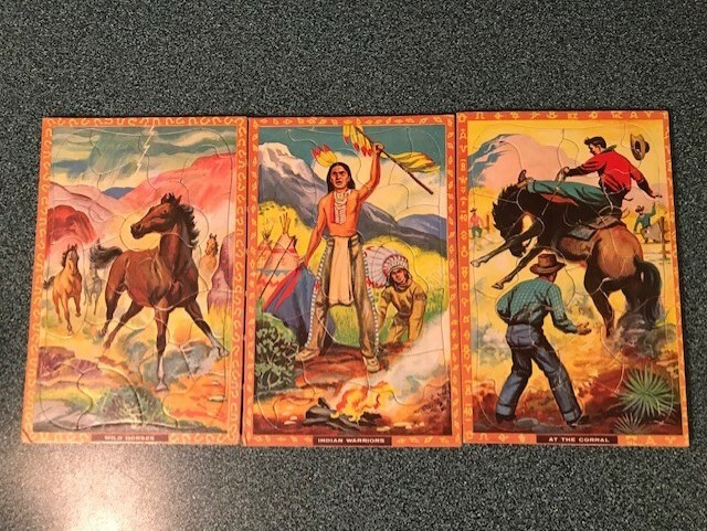 Vintage 1959 Pocket Playbox 3 Jigsaw Puzzles of the Wild West - complete