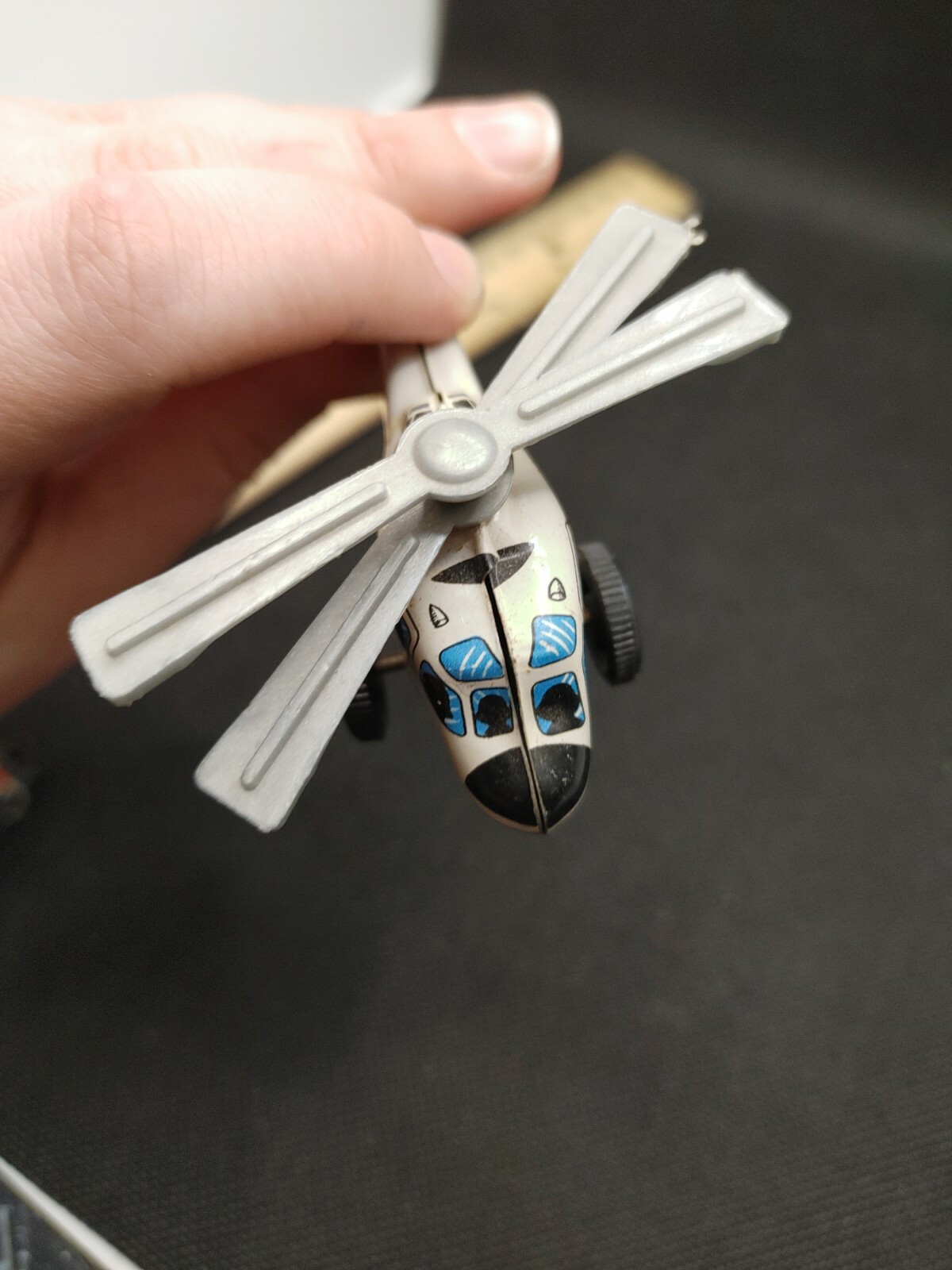 как выглядит Vintage 1950s Tin Toy Police Patrol Bell Helicopter Made in Japan ND фото