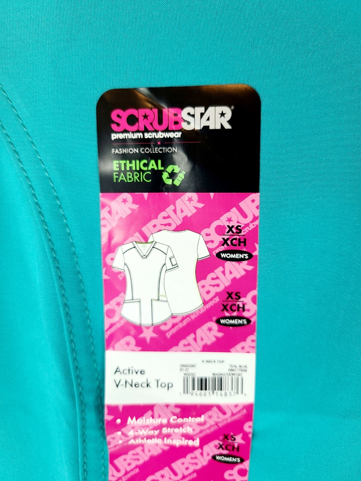 Scrubstar Women's Active V-Neck Scrub Top Teal Blue Stretch Moisture Control XS
