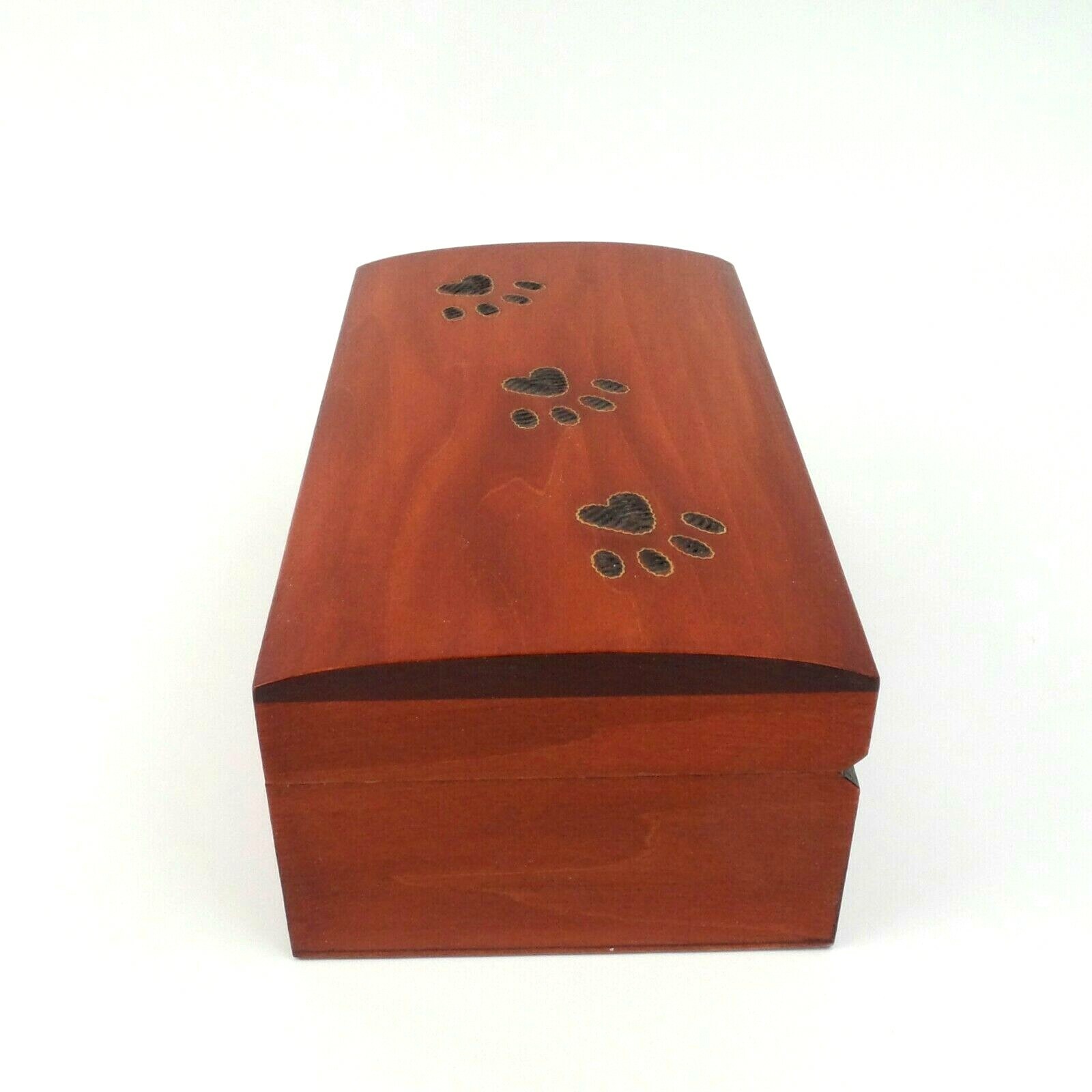 Medium Pet Cremation Urn Inlay Paw Print Wood Box Cat Dog Ashes Memorial Chest