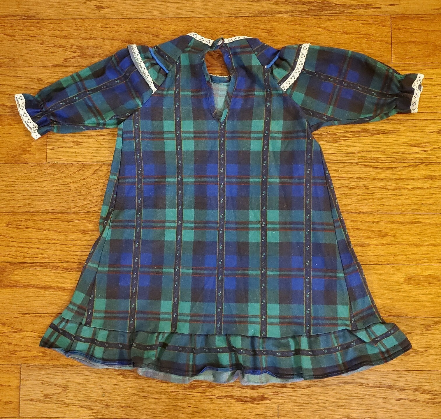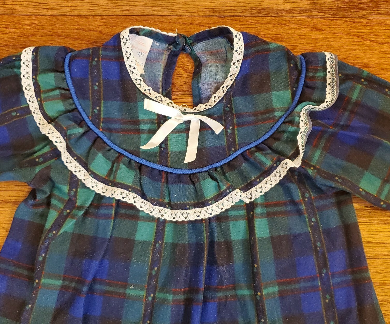 Vintage Cassie Toddler Girls 2T blue green Plaid Holiday Nightgown Lace Trim