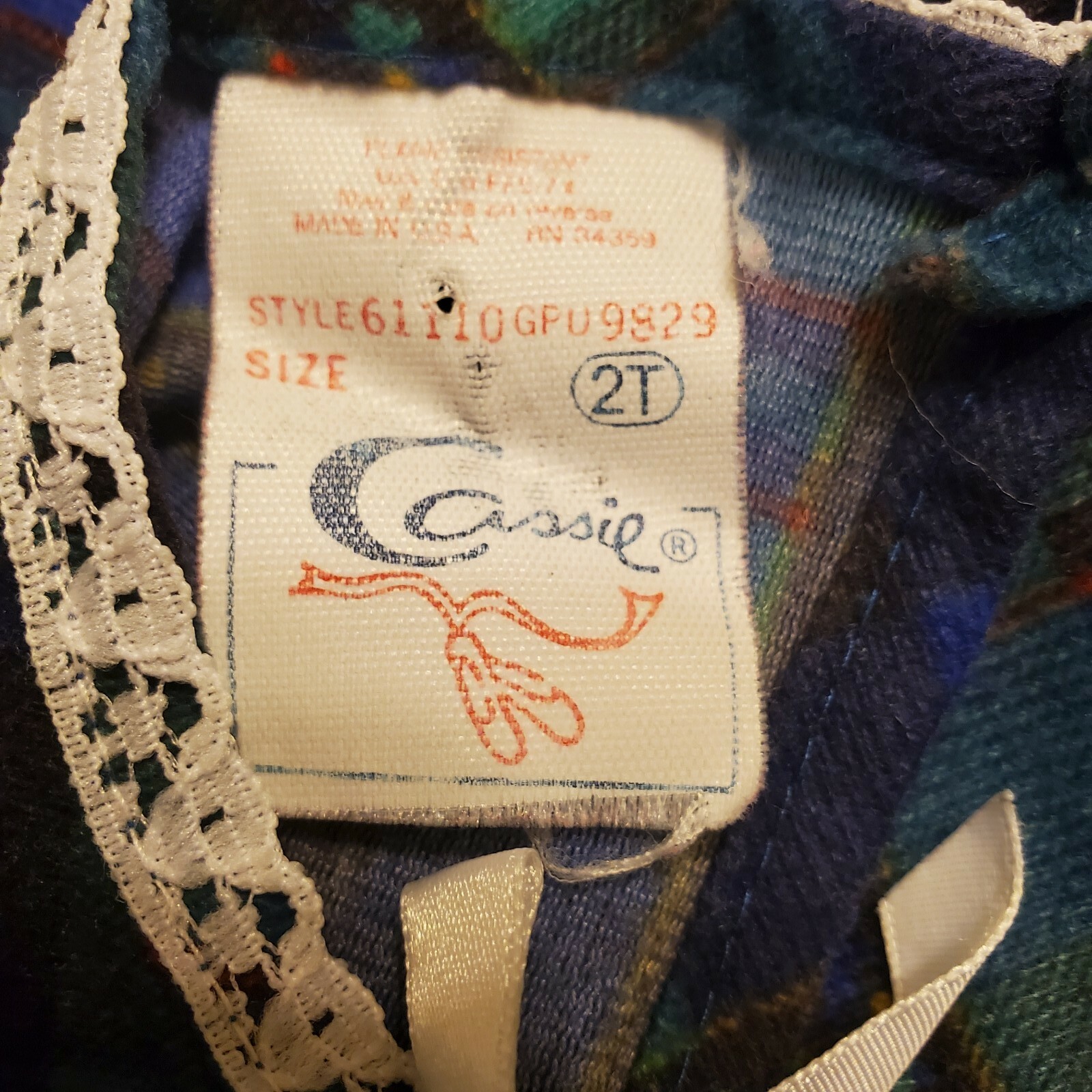 как выглядит Vintage Cassie Toddler Girls 2T blue green Plaid Holiday Nightgown Lace Trim фото