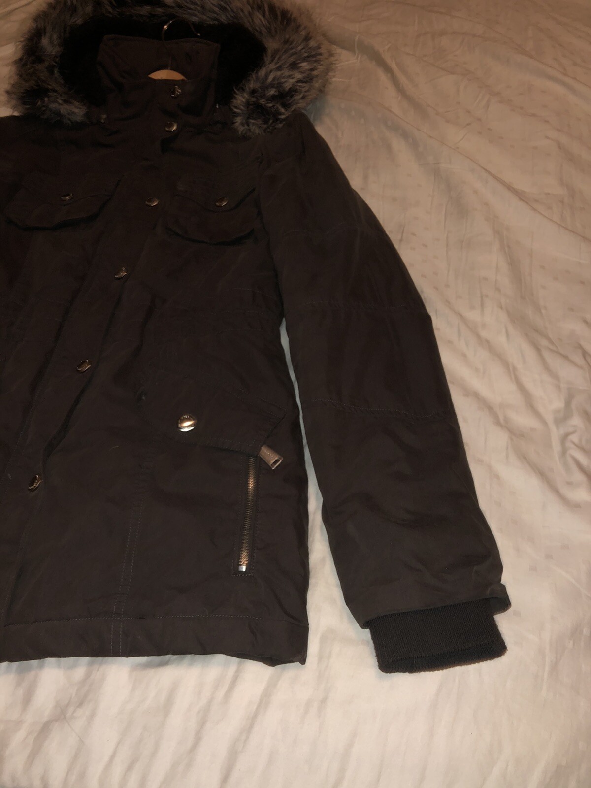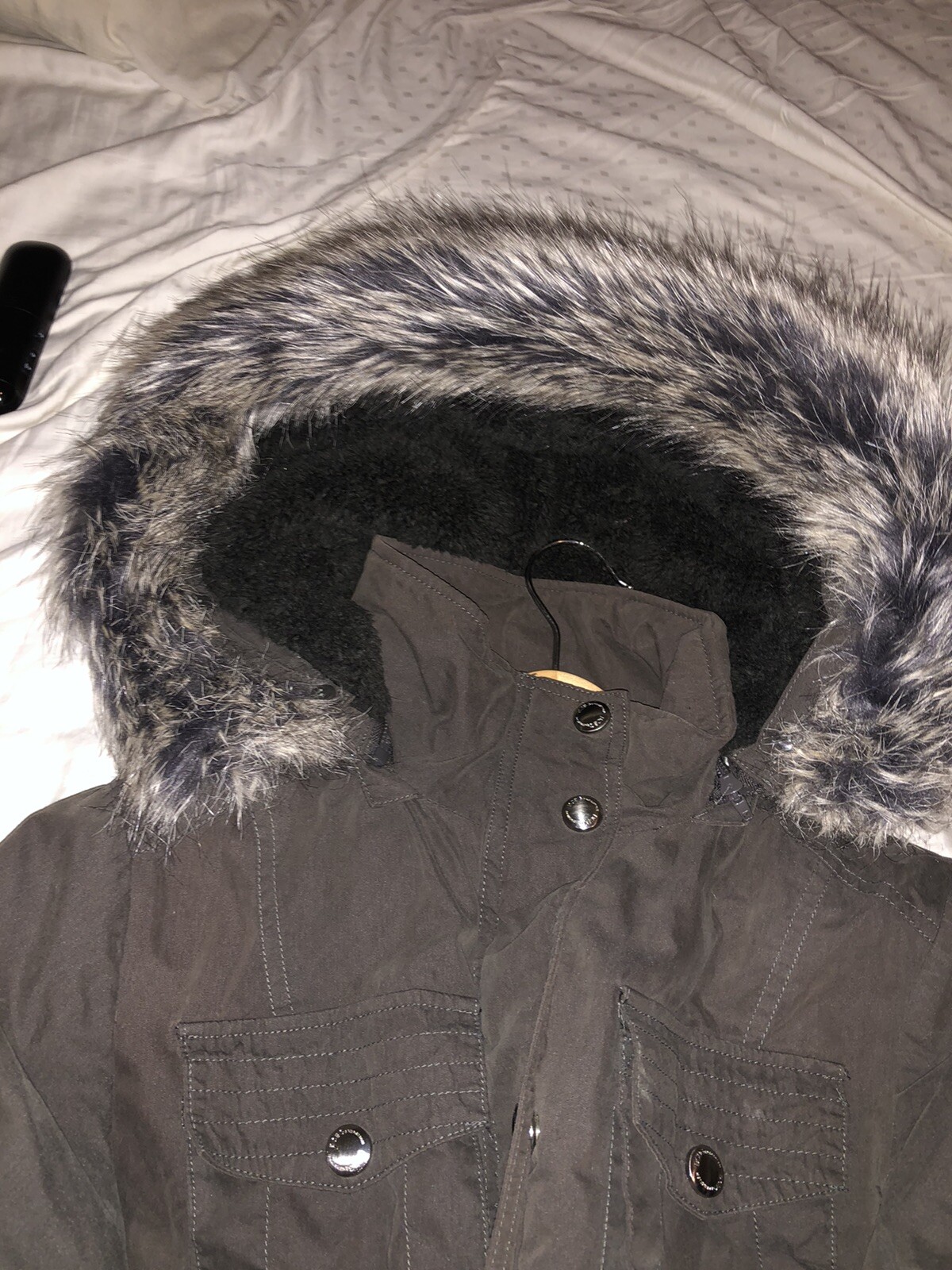 как выглядит BCBGeneration BCBG Womens Faux-Fur-Trim Anorak Coat Parka Size Medium фото