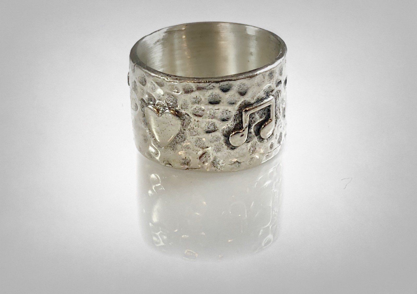 как выглядит Musical Notes Hearts Solid Sterling Silver 925 Pinky Ring by Ezi Zino фото