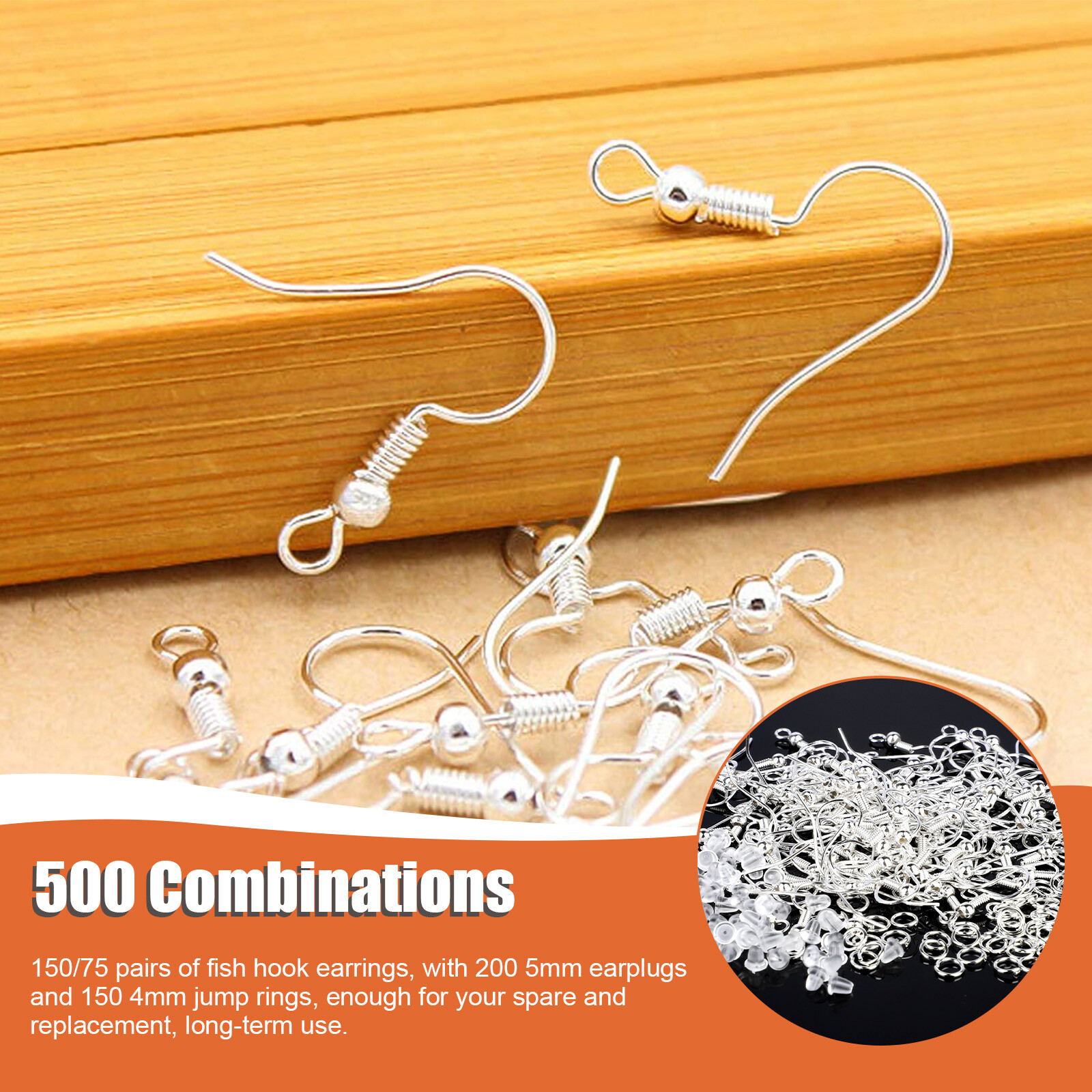 как выглядит 500Pcs Ear Hooks Silver Clasps Findings Earring Wires for DIY Jewelry Making Kit фото