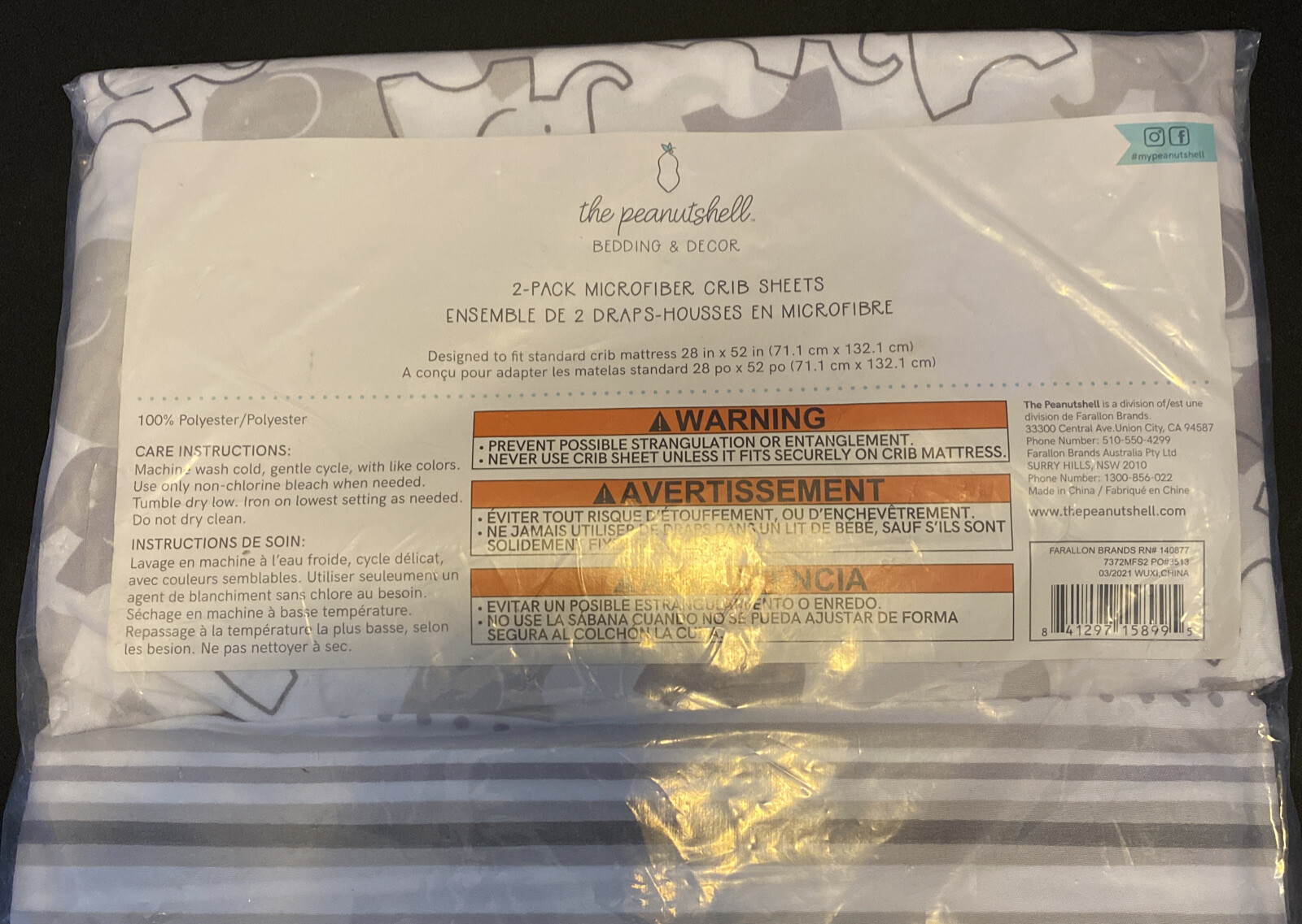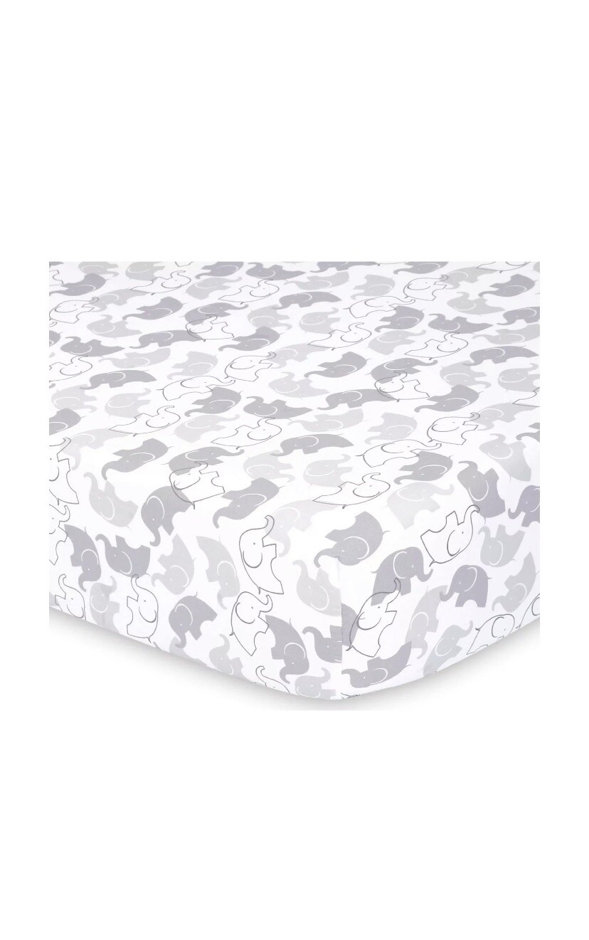 The Peanutshell Fitted 2-Pack Microfiber Crib Sheet Set Grey Elephants