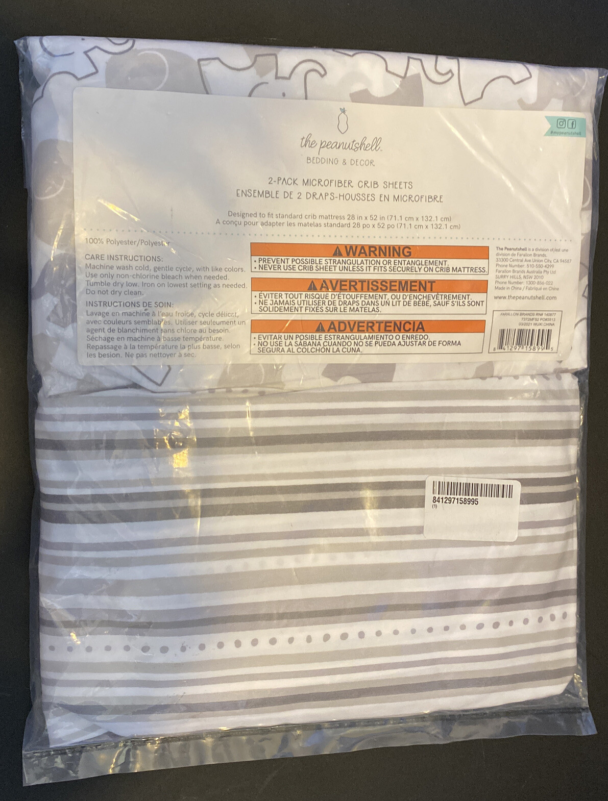 как выглядит The Peanutshell Fitted 2-Pack Microfiber Crib Sheet Set Grey Elephants фото