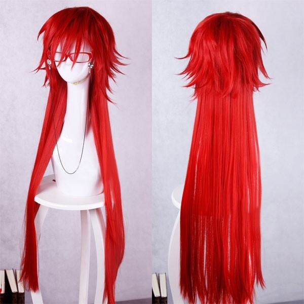 Cosplay Wigs Black Butler Grell Sutcliff Long Red Hair Red Glasses Chain
