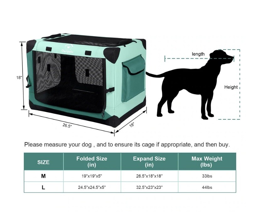 Ownpets 4 Door Folding Dog Crate Size M W/strong Steel Frame green Color