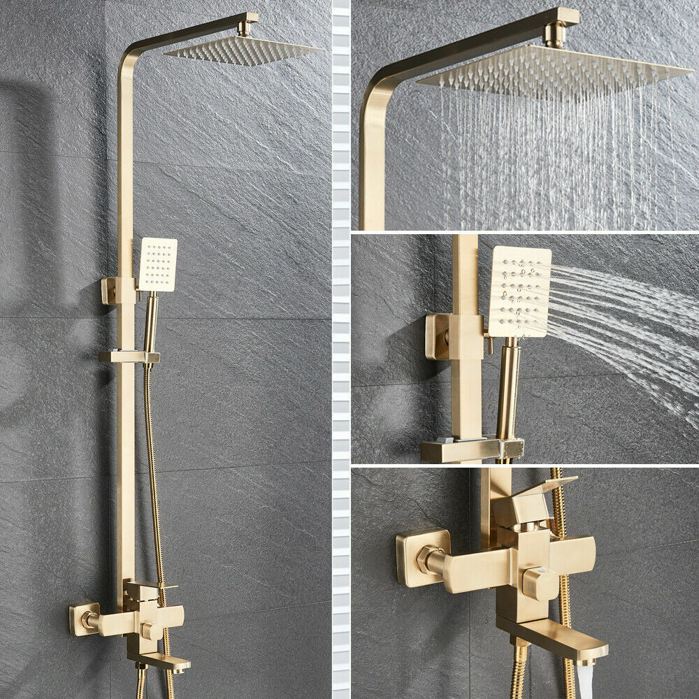 Bathroom Shower Faucet Set Rainfall Wall Mounted Tub Mixer Tap Brushed Gold