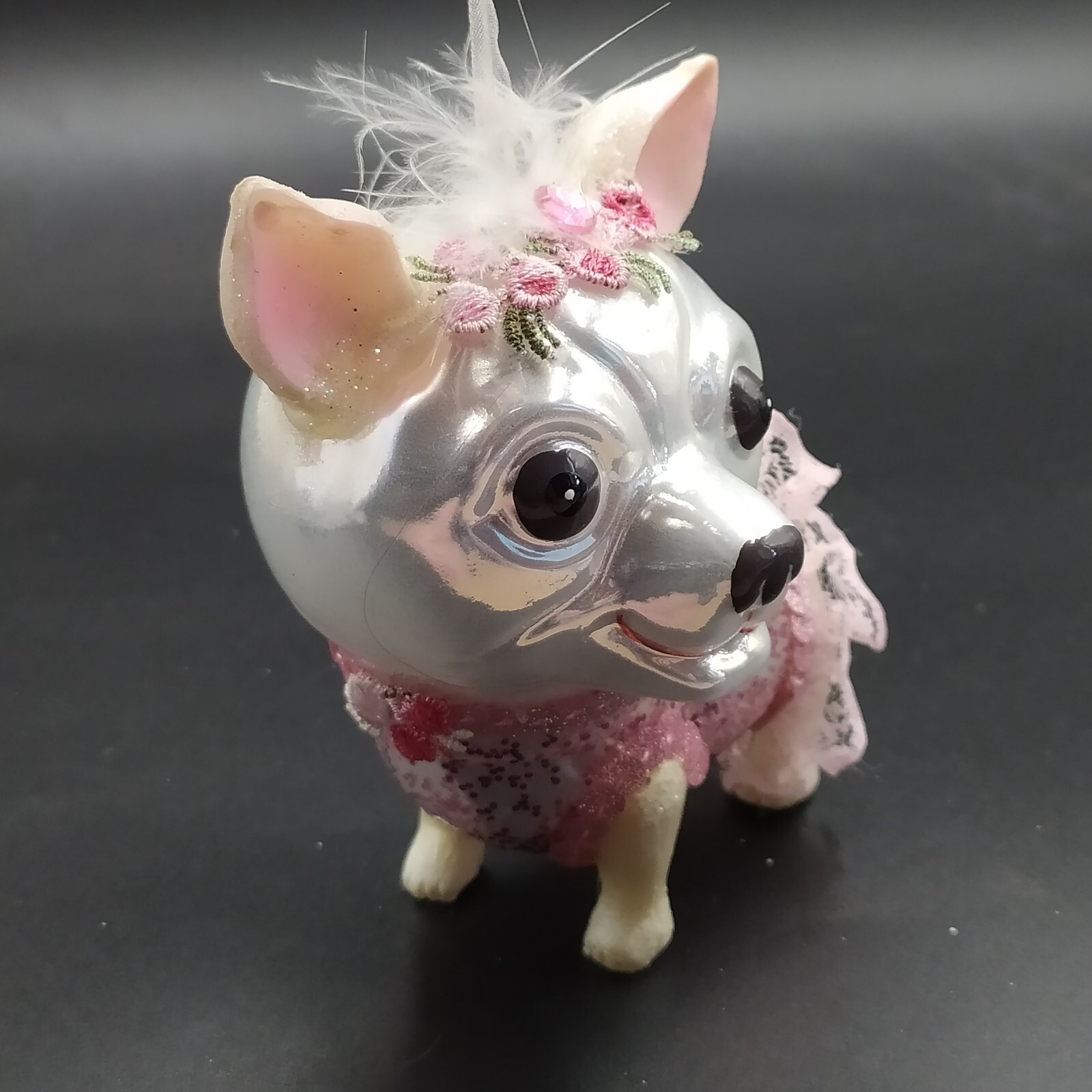 A160 Glass Pink Chihua Girl Dog Chihuahua Bauble Christmas Tree Ornament