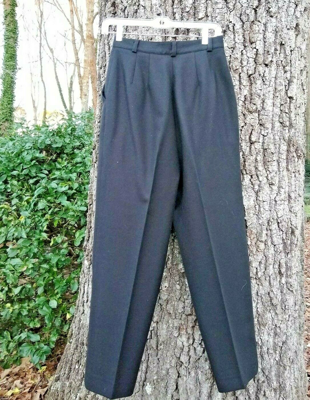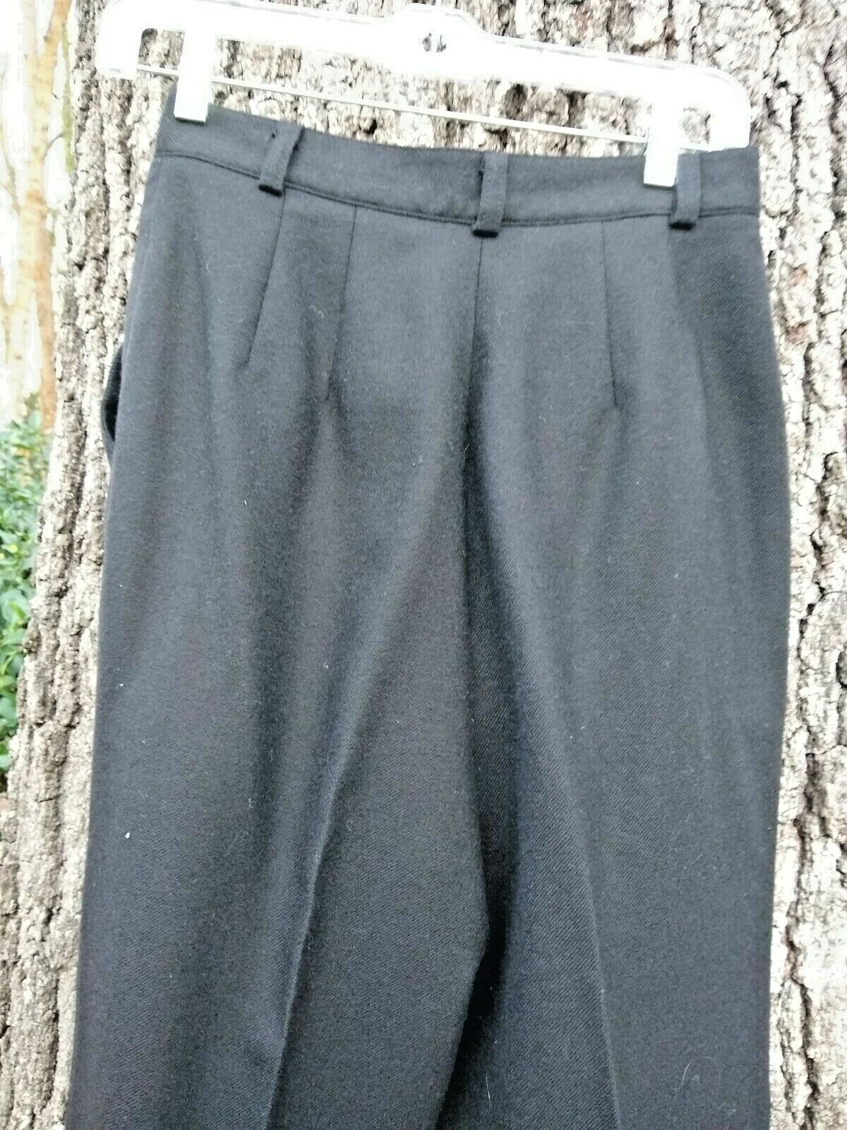 VTG High Waist Wool Pleated Trouser Academia Dress Pants 10 Petite Black 80's