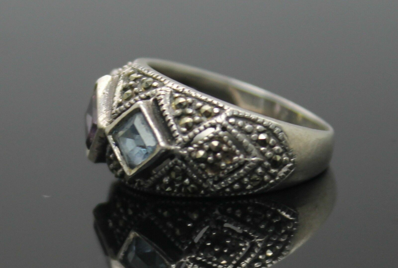 как выглядит VINTAGE CITRINE AMETHYST BLUE TOPAZ MARCASITES ACCENT STERLING SILVER RING 6.75 фото