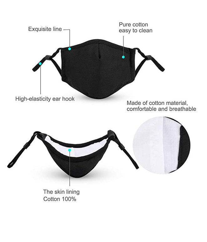 как выглядит 5 Pack Kids Black Face Mask Reusable Washable Masks / Cover Cotton Cloth Unisex фото