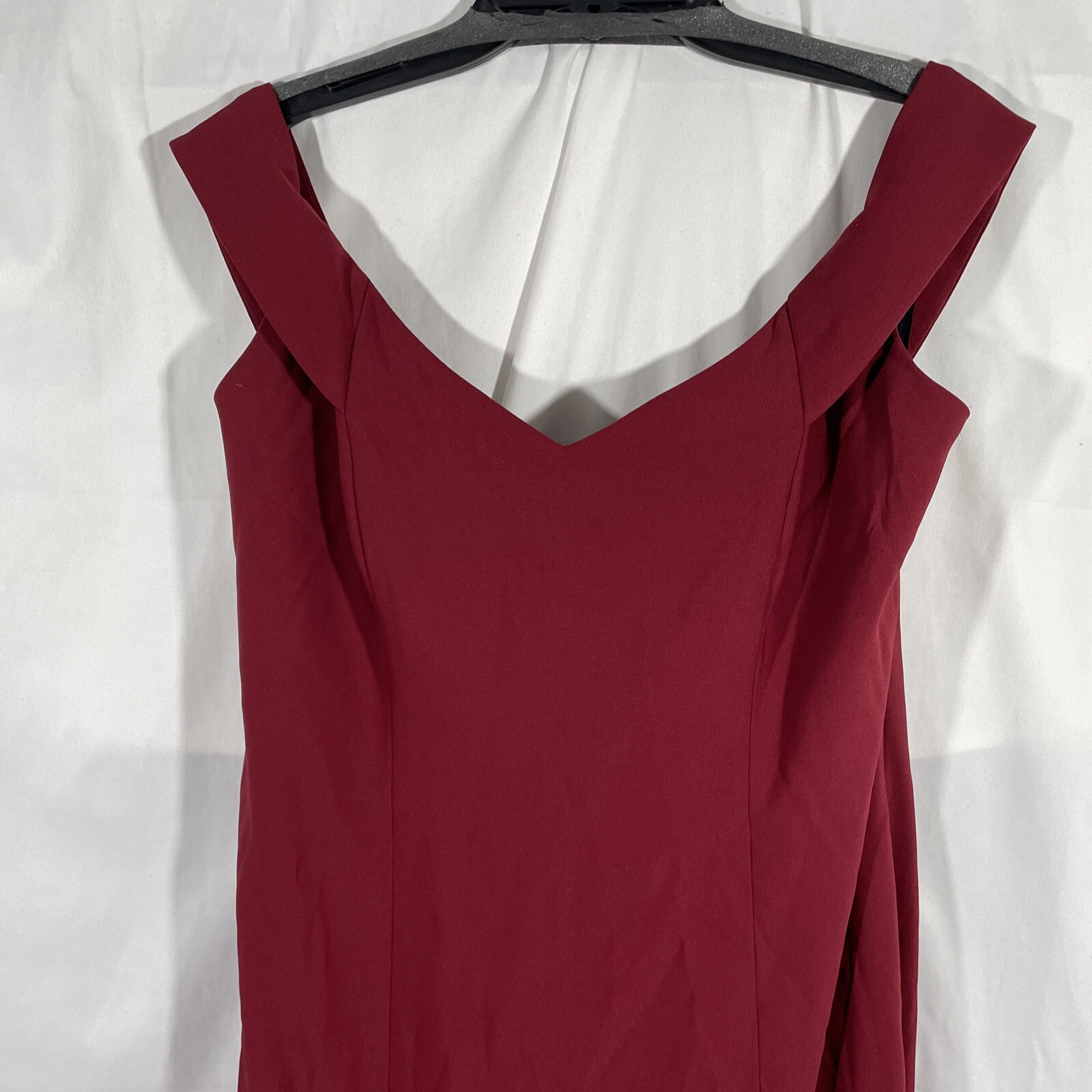 как выглядит NEW 265 Dessy Collection 14 Off Shoulder Crossback Gown in Burgundy S234 фото