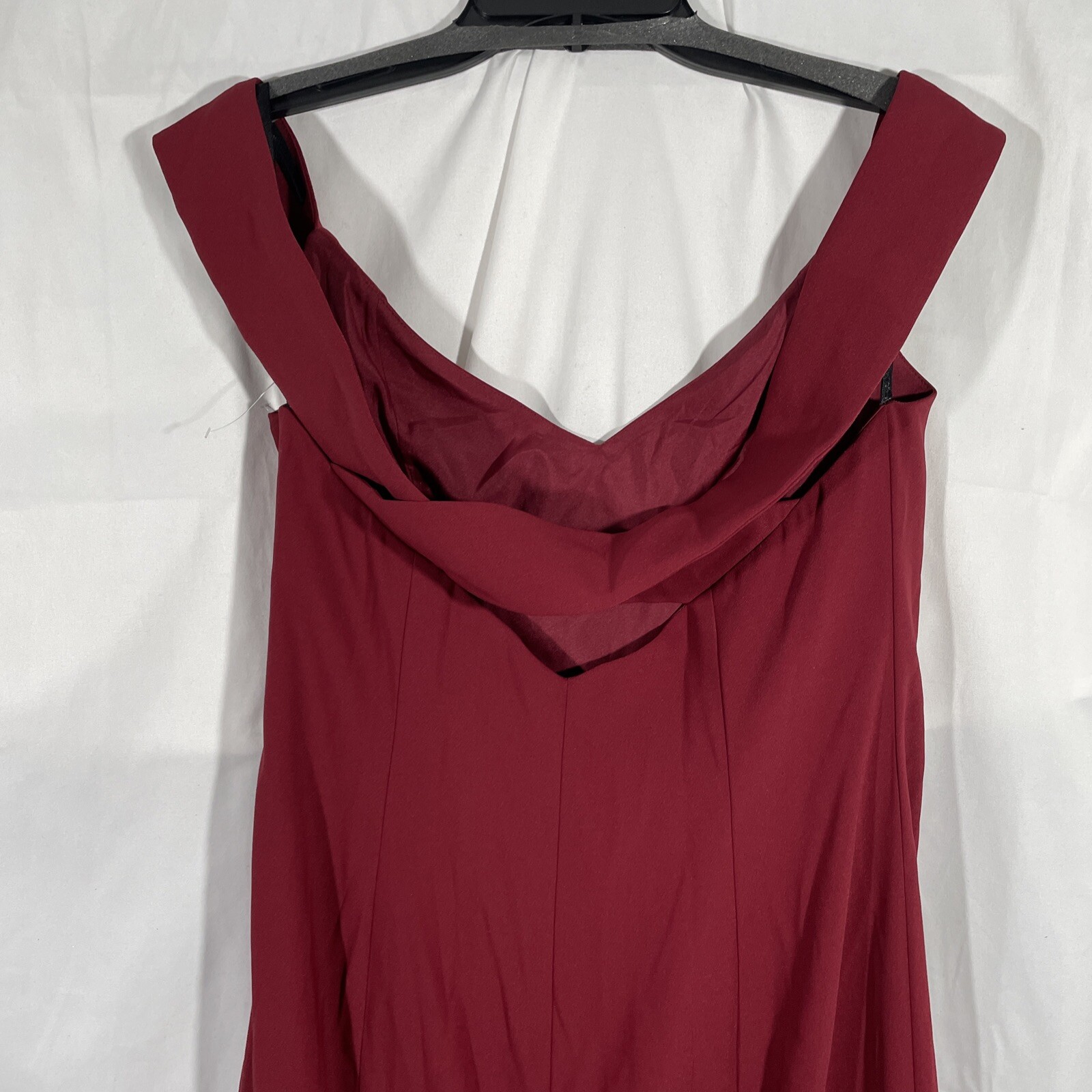 NEW 265 Dessy Collection 14 Off Shoulder Crossback Gown in Burgundy S234