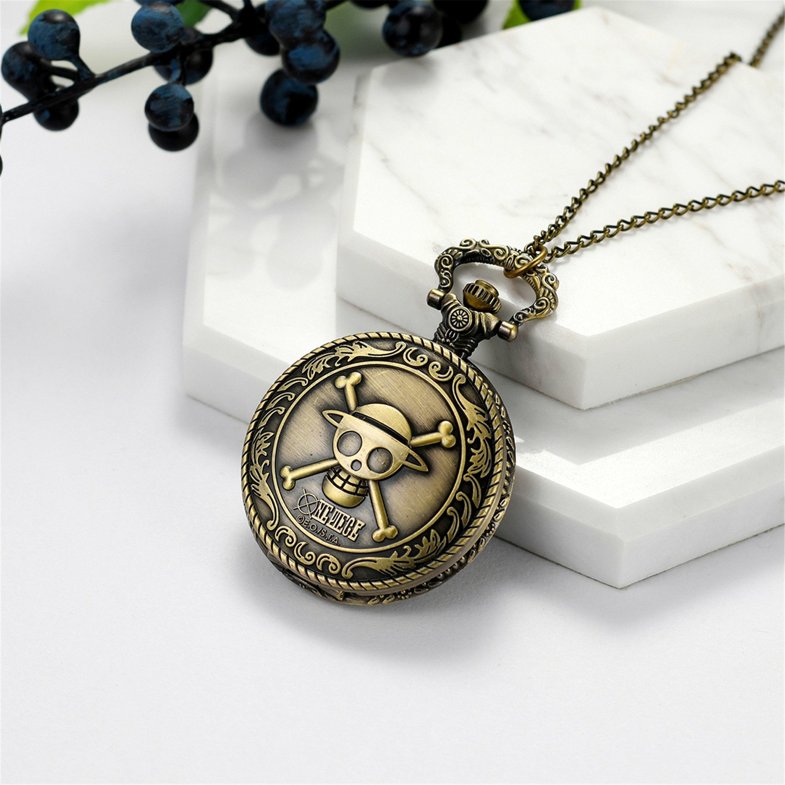 Antique Bronze Tone Skull Crossbones Quartz Pocket Watch Necklace Chain Gift