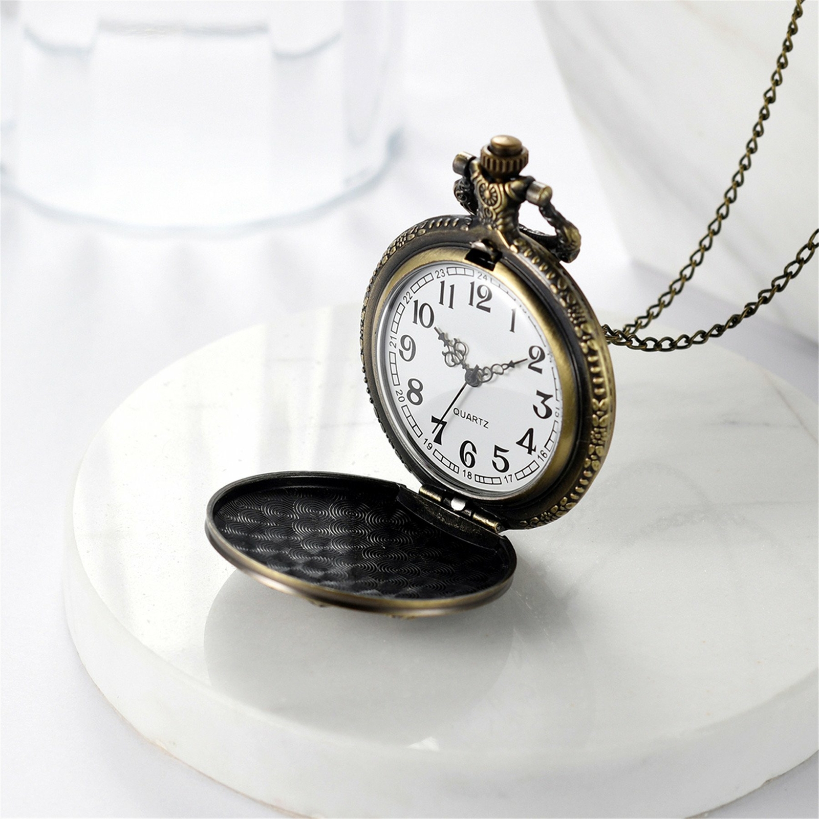 как выглядит Antique Bronze Tone Skull Crossbones Quartz Pocket Watch Necklace Chain Gift фото