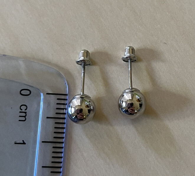 14K White Gold 7mm Shiny Ball Stud Earrings Screw Back