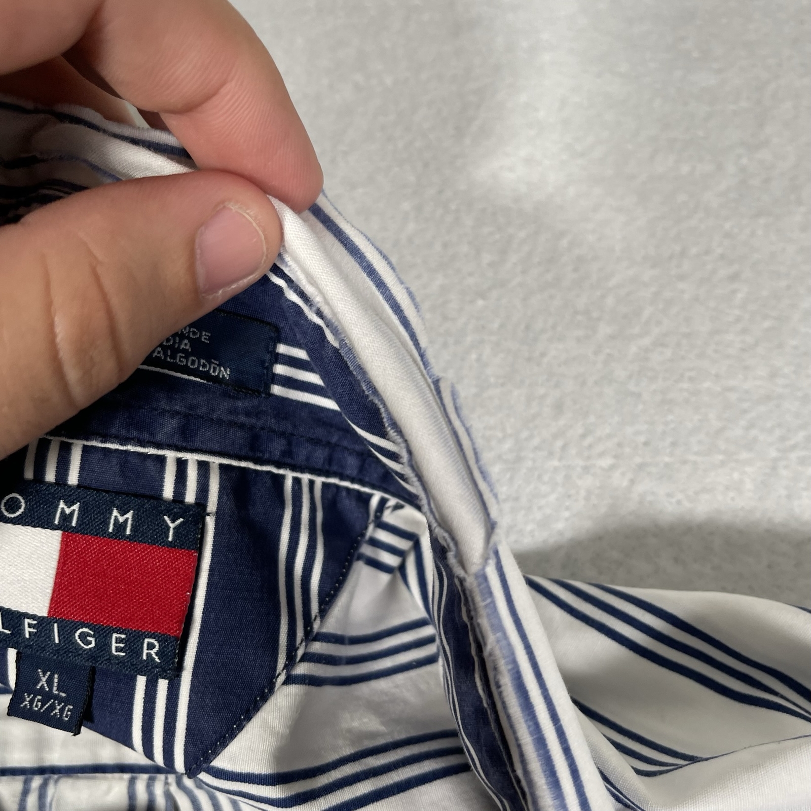 как выглядит Mens Tommy Hilfiger Button Down Shirt Blue White Stripes Size XL фото
