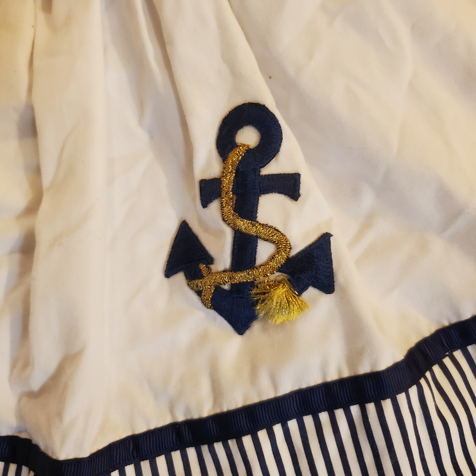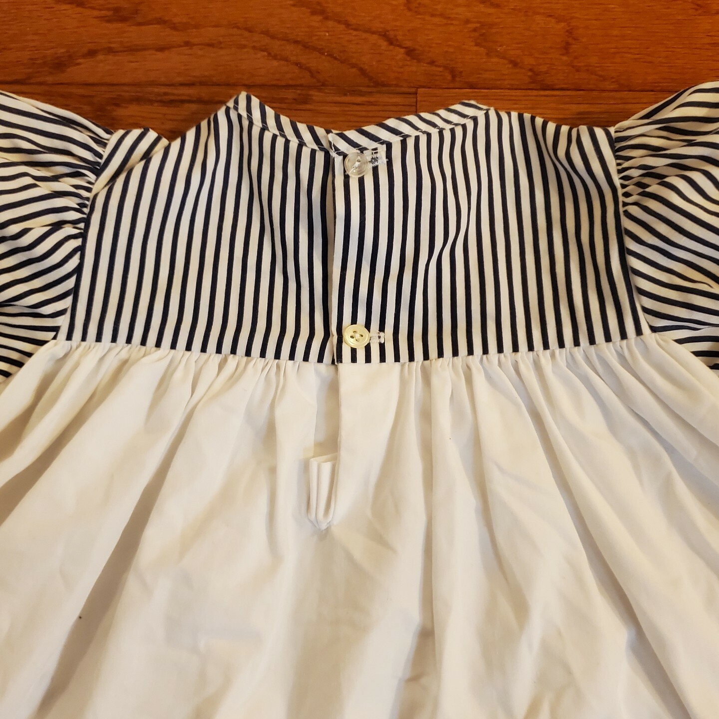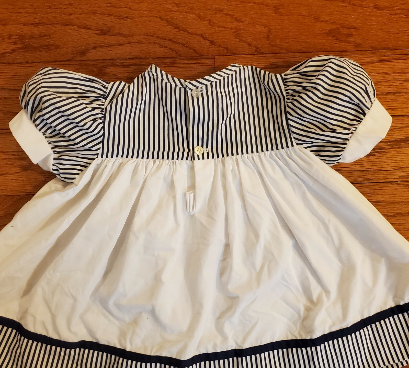 Vintage Unbranded Baby Girls White Navy Sailor Dress Striped Bow 18 Months