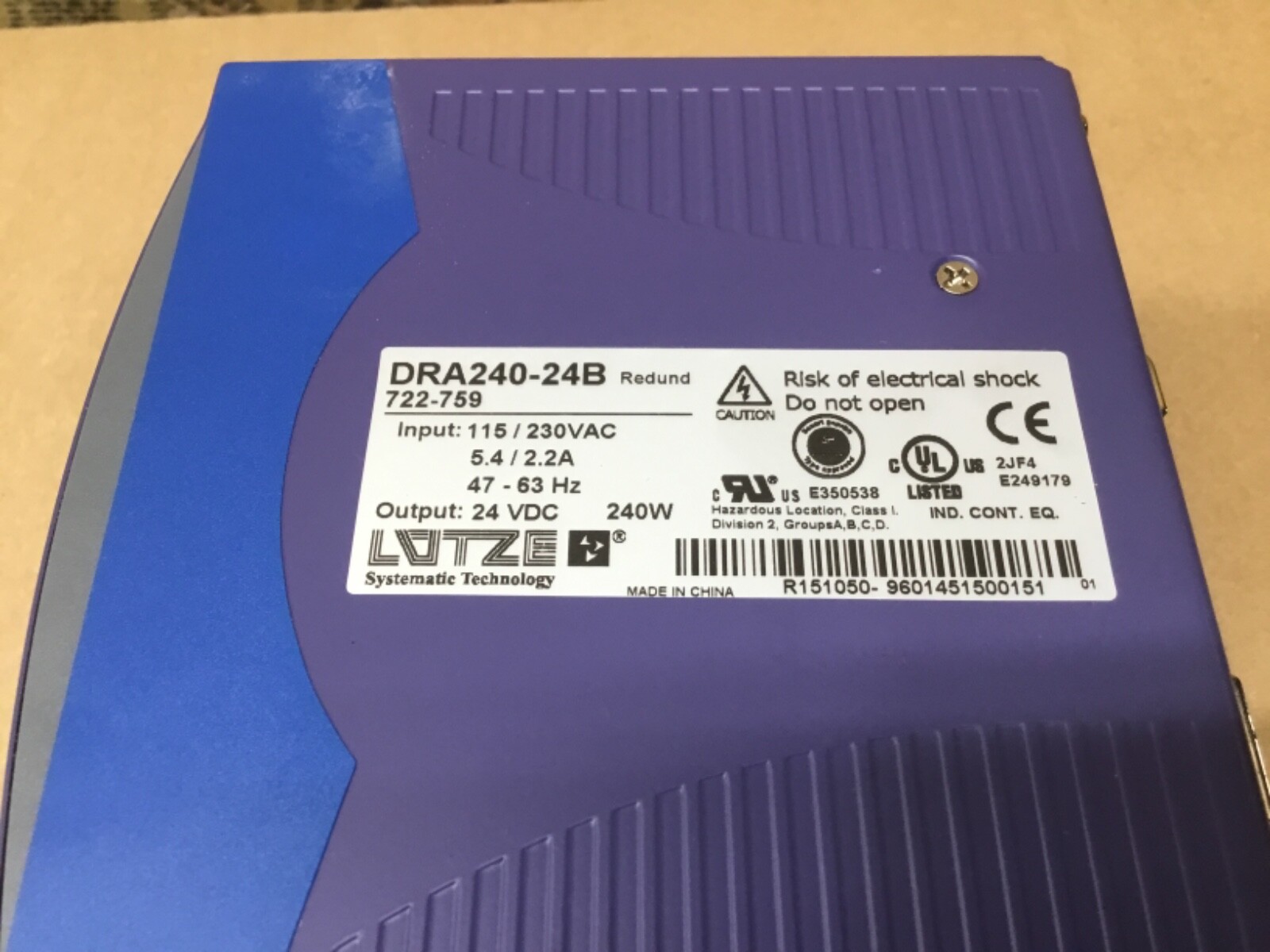 как выглядит LUTZE DRA240-24B POWER SUPPLY 24VDC 10A 115/230VAC XLNT 18D56PR5 IAC фото