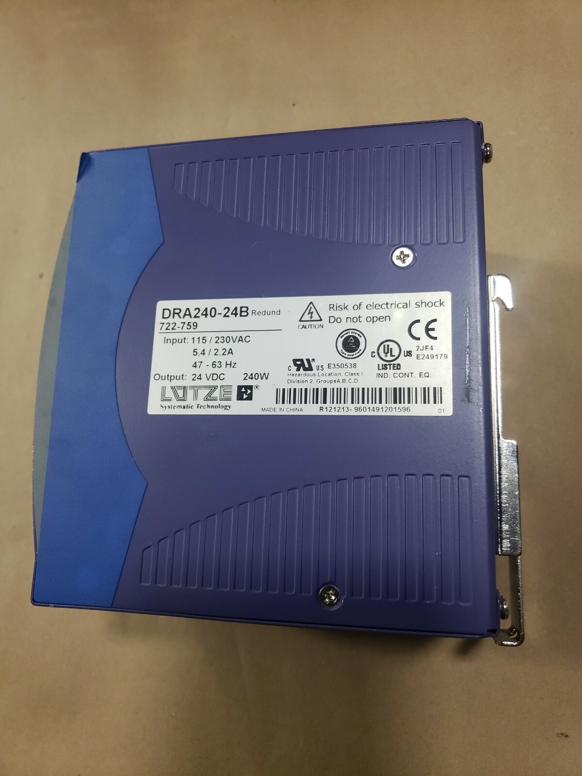LUTZE DRA240-24B POWER SUPPLY 24VDC 10A 115/230VAC XLNT 501D56PR5 IAC