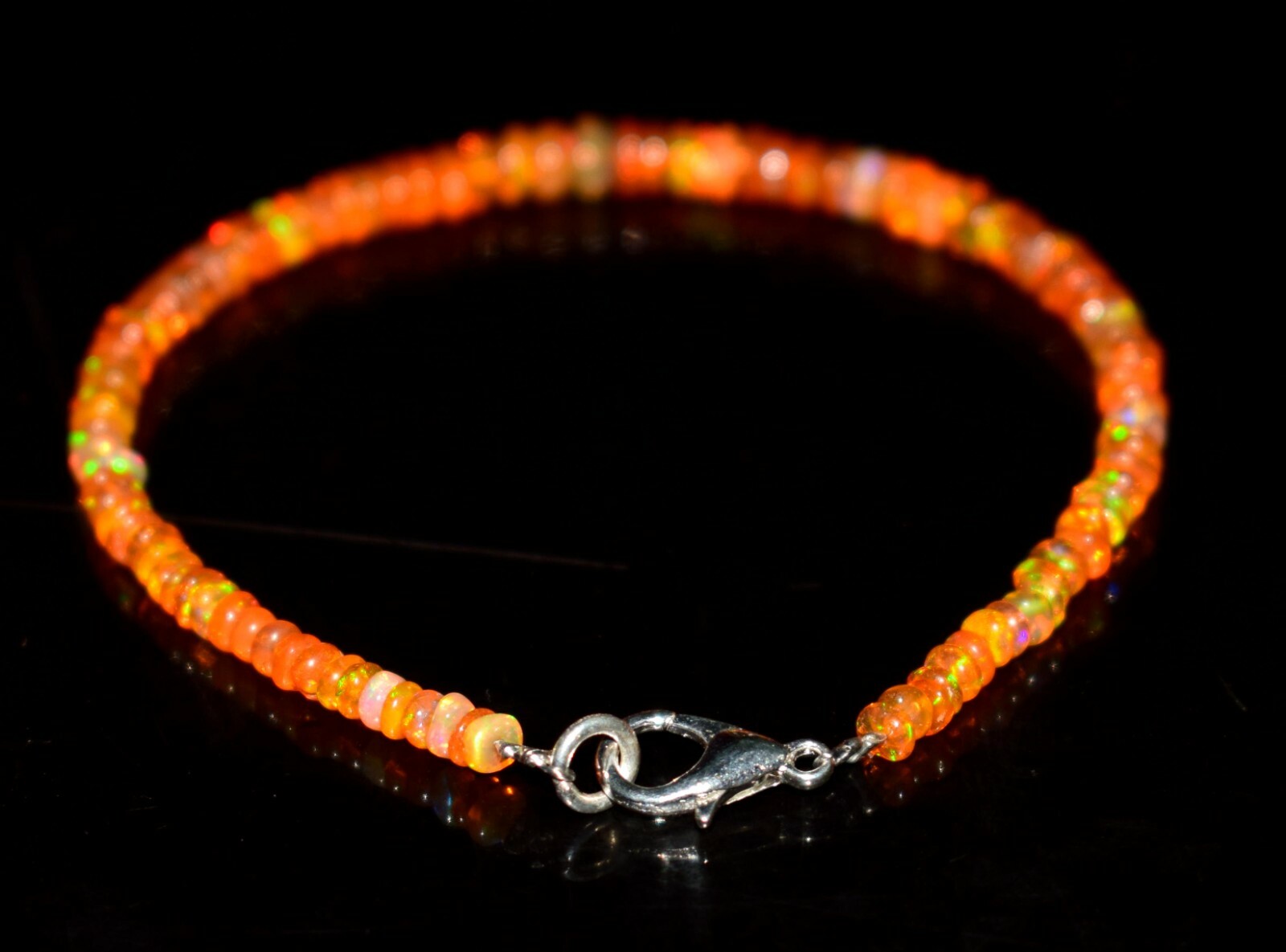 7Natural Ethiopian Wello Fire Opal Gemstone Fire Beads Bracelet F01464