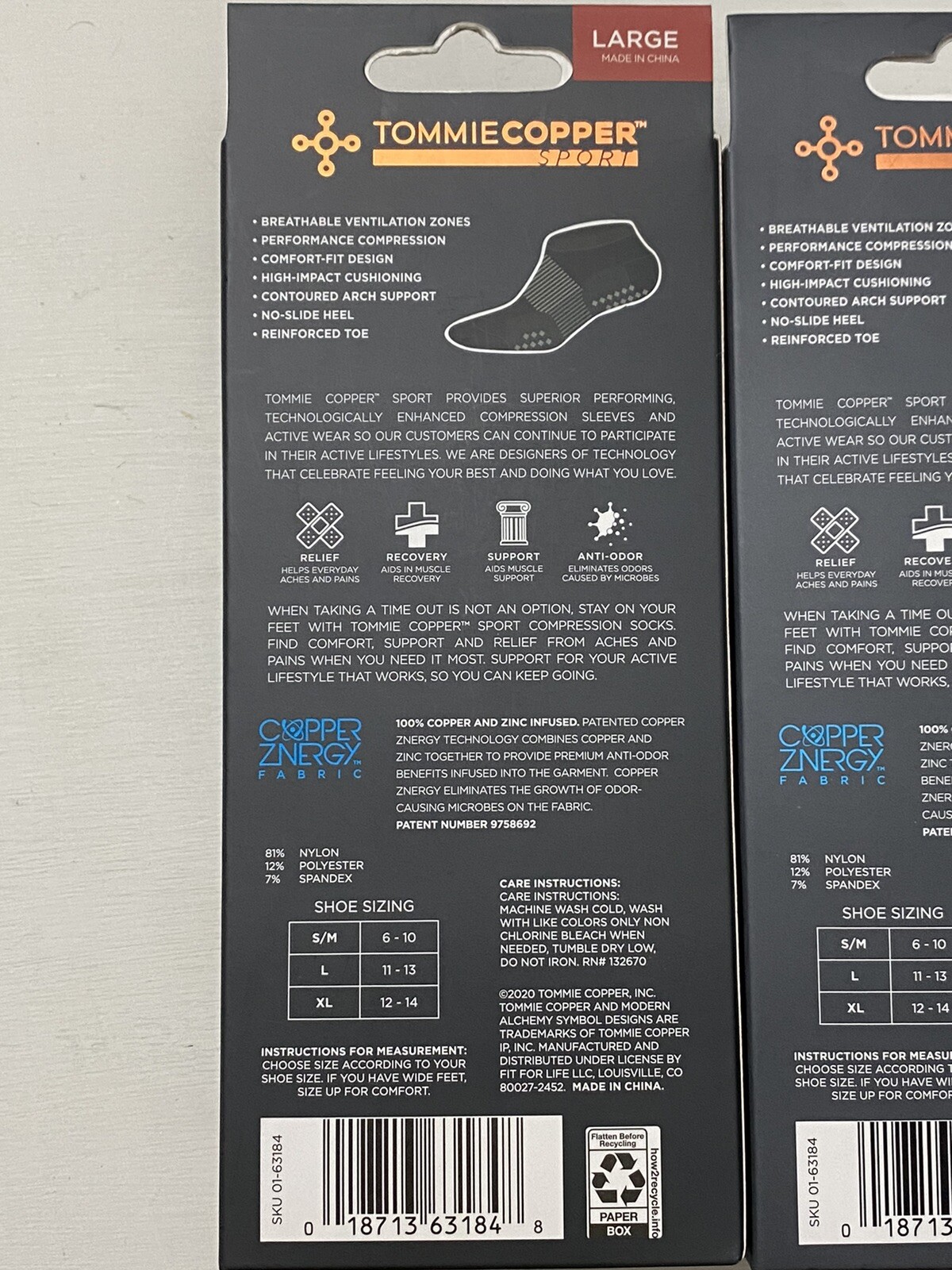 3 Tommie Copper Compression Low Cut Socks 3 Pair Large Black Infused Sport