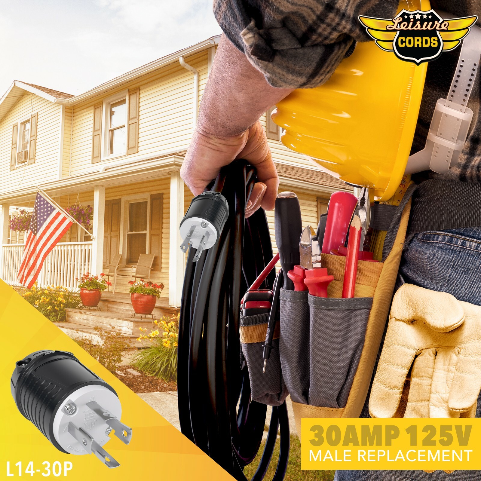 4-Prong 30 AMP Replacement Locking Male Power Cord End NEMA L14-30P 7500 Watt