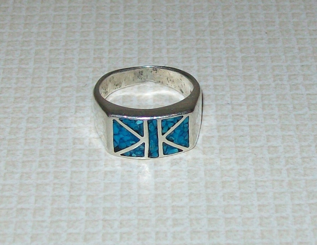как выглядит Vintage Native American Tested Sterling Silver 925 Turquoise Inlaid Ring Sz 8. фото