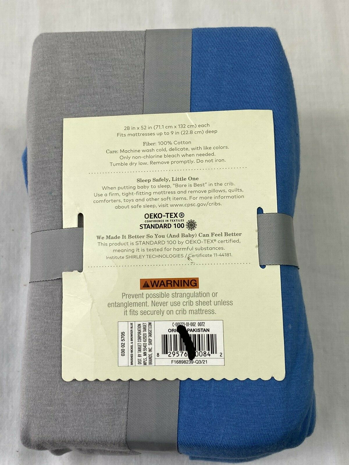 Cloud Island 2-pack Jersey Crib Fitted Sheets blue gray new 084