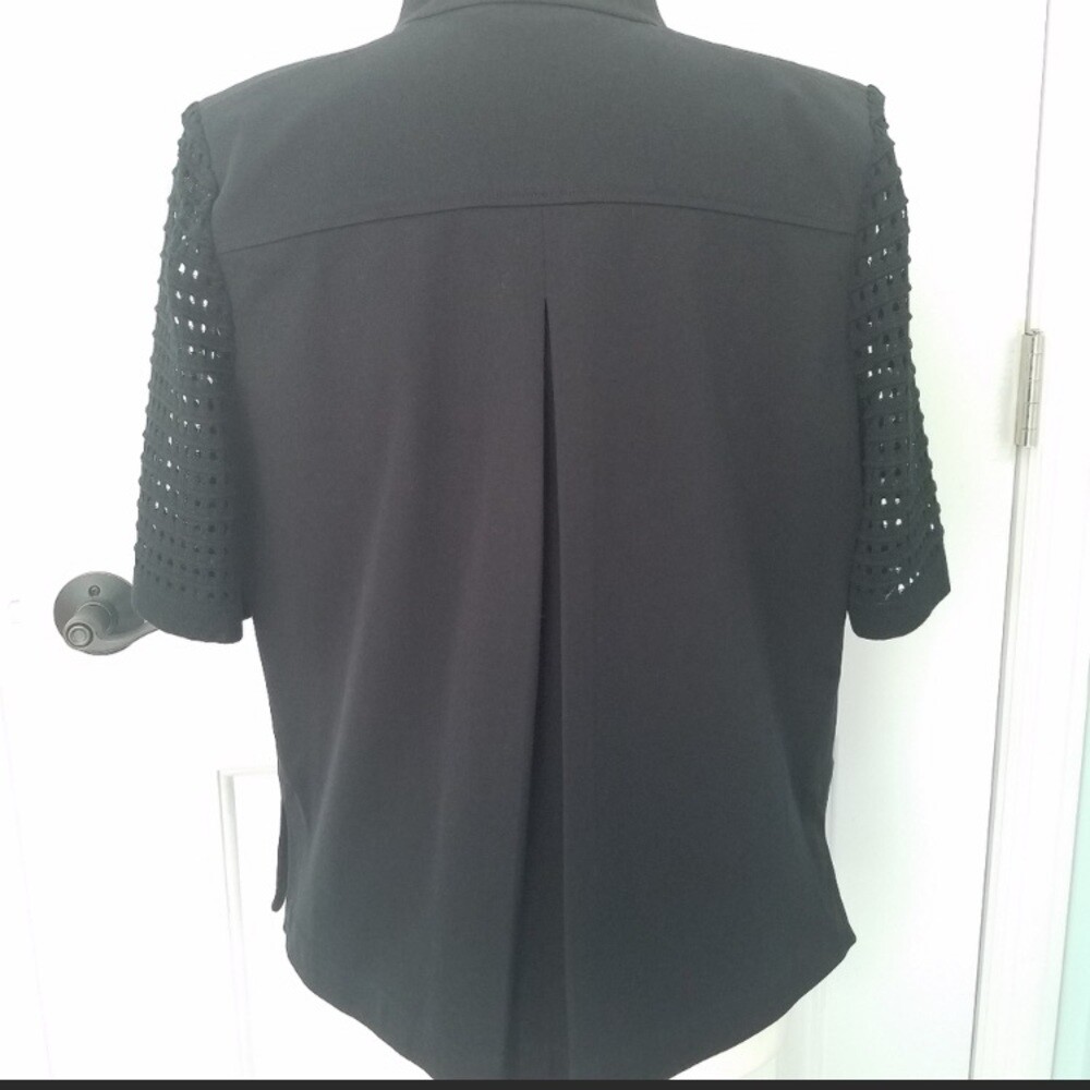 как выглядит NWT Ming Wang Crepe Heritage Fit Jacket with Crocheted Sleeve. Size Medium фото