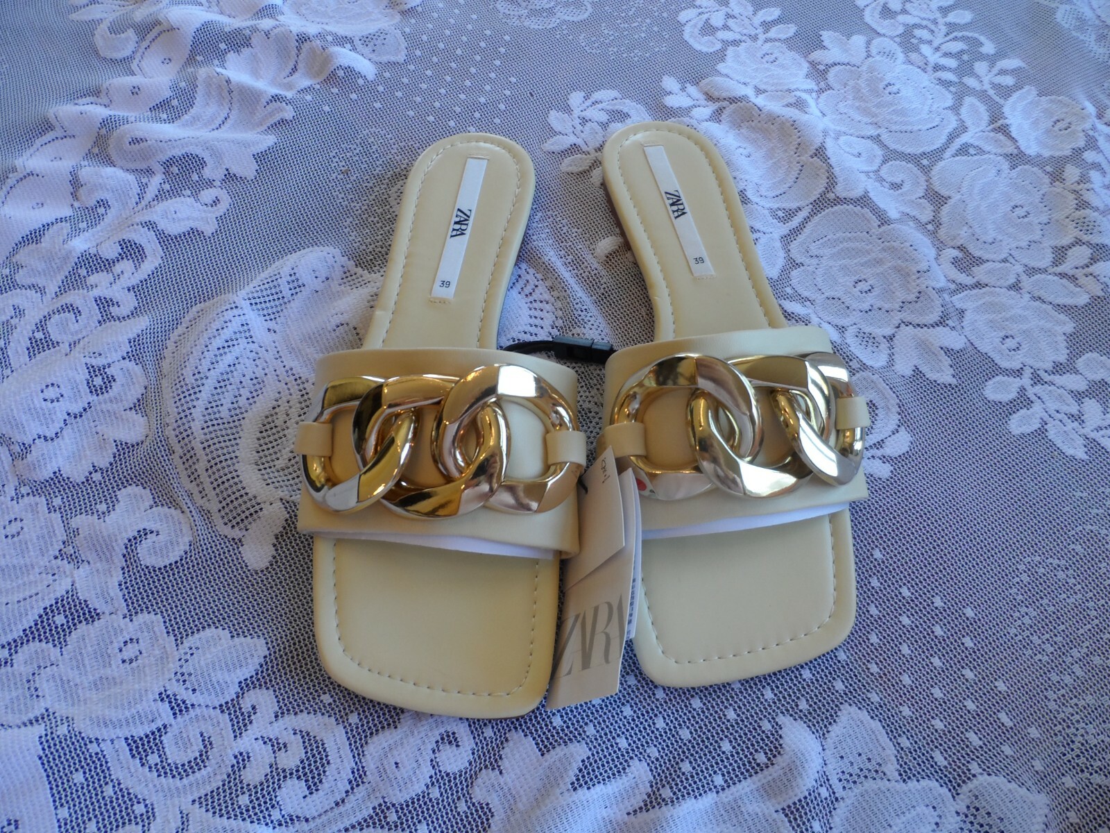 как выглядит New Zara Yellow Sandals W/ Large Chain Trim Size 8 M фото