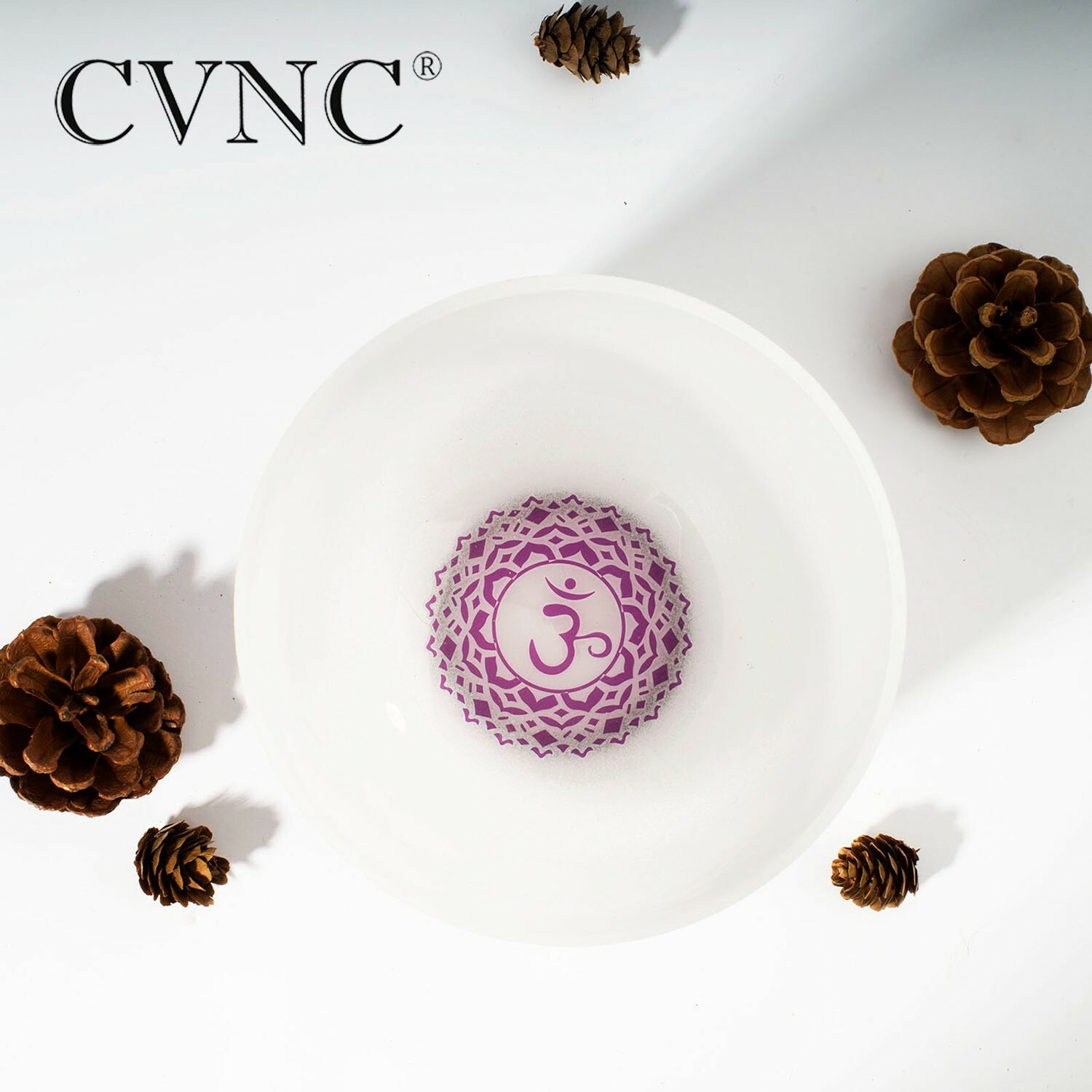 как выглядит CVNC 432Hz 6" B Crown Chakra Symbol Frosted Quartz Crystal Singing Bowl фото